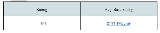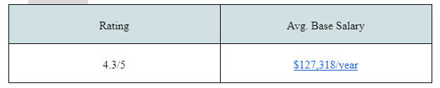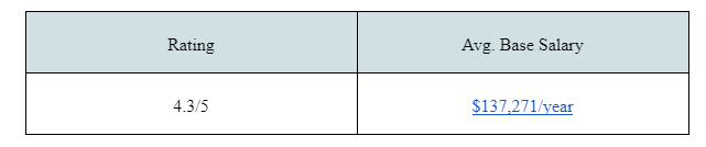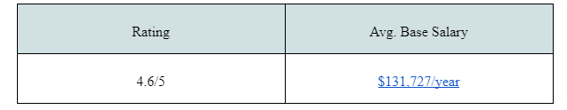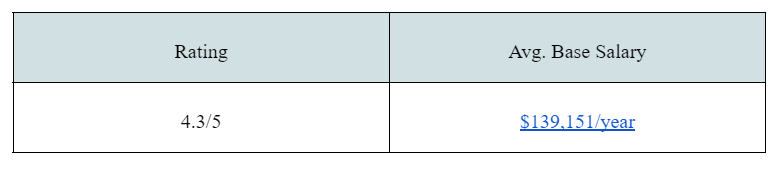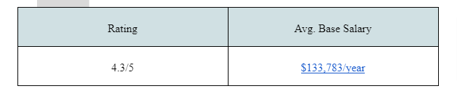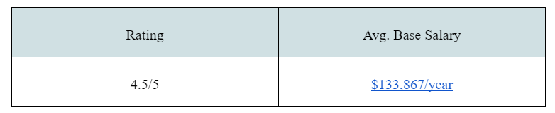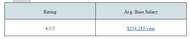 Ranking 10th in the list of “Best Places to Work in 2021,” software engineers earn between $81,369 and $1,71,536.